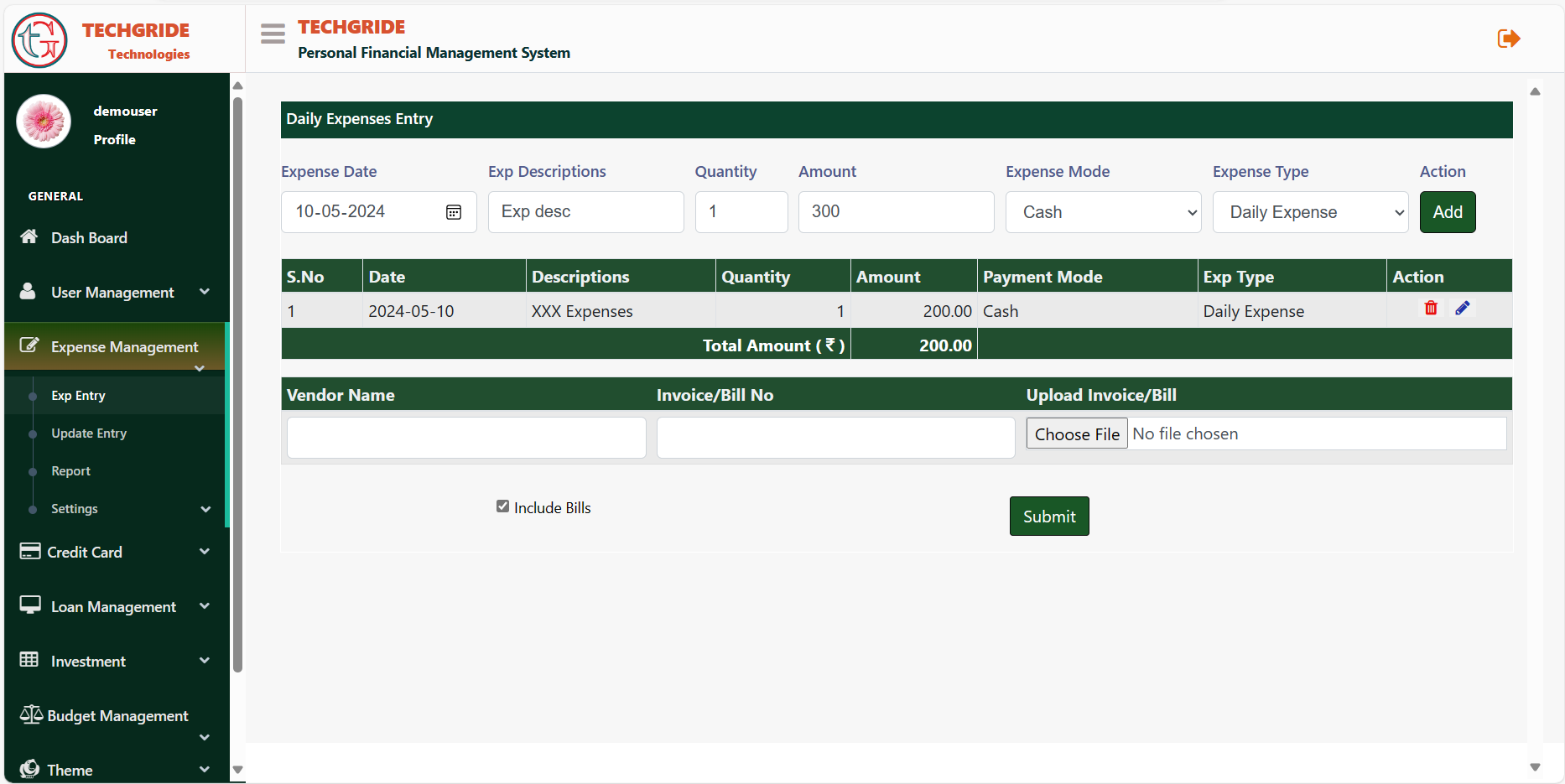 Personal Financial Management System(PFMS) refers to the digital tools that consumers use to manage their financial situation. PFMS tools help individuals to maintain their everyday financial expenses. These tool having following option to maintain the expense record.